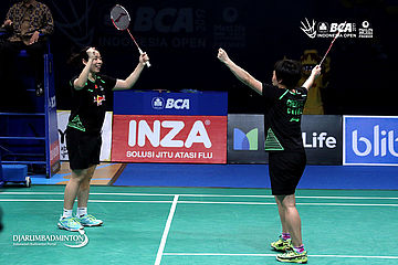 Selebrasi kemenangan Chen Qingchen/Jia Yifan (Tiongkok)