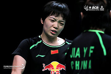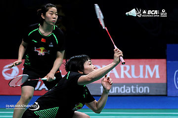 Chen Qingchen/Jia Yifan (Tiongkok) bersiap menghadang serangan