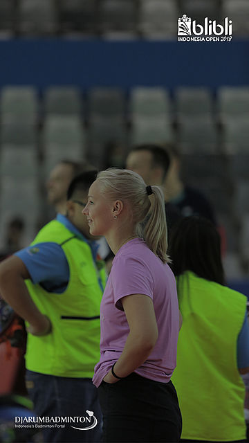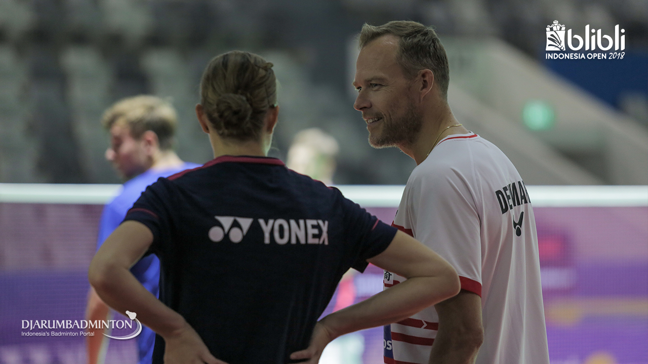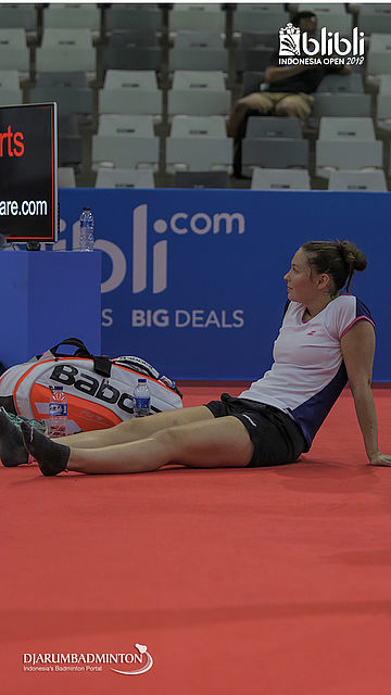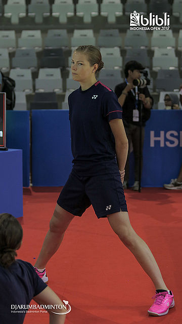 Christinna Pedersen (Denmark) melakukan pemanasan