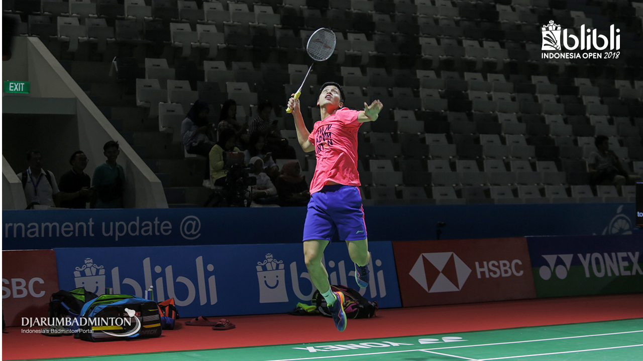 Wong Wing Ki Vincent (Hongkong) bersiap melakukan smash