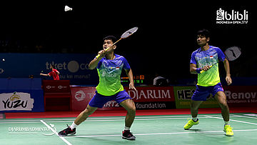 Berry Angriawan/Hardianto (INA) bersiap menghadang pengembalian.