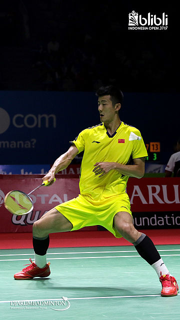 Chen Long (CHN) menyambut pengembalian.