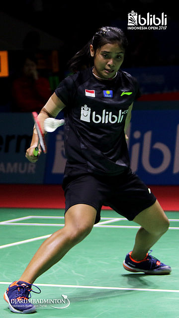 Gregoria Mariska Tunjung (INA) berhasil menghadang serangan.
