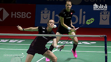 Kamilla Rytter Juhl/Christinna Pedersen (DEN) mengembalikan shuttlecock