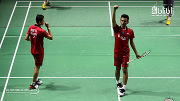 Fajar Alfian/Muhammad Rian Ardianto (INA) bersiap menyambut pengembalian