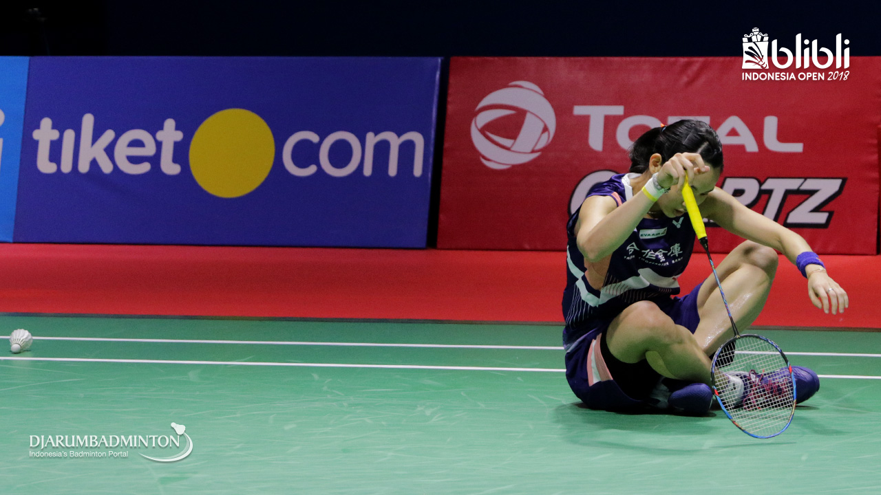 Tai Tzu Ying (TPE) terjatuh saat berusaha menghadang serangan