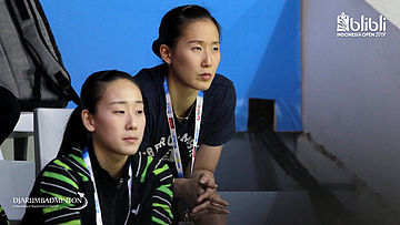 Chang Ye Na (kanan) dan Lee So He nampak serius menyaksikan pertandingan