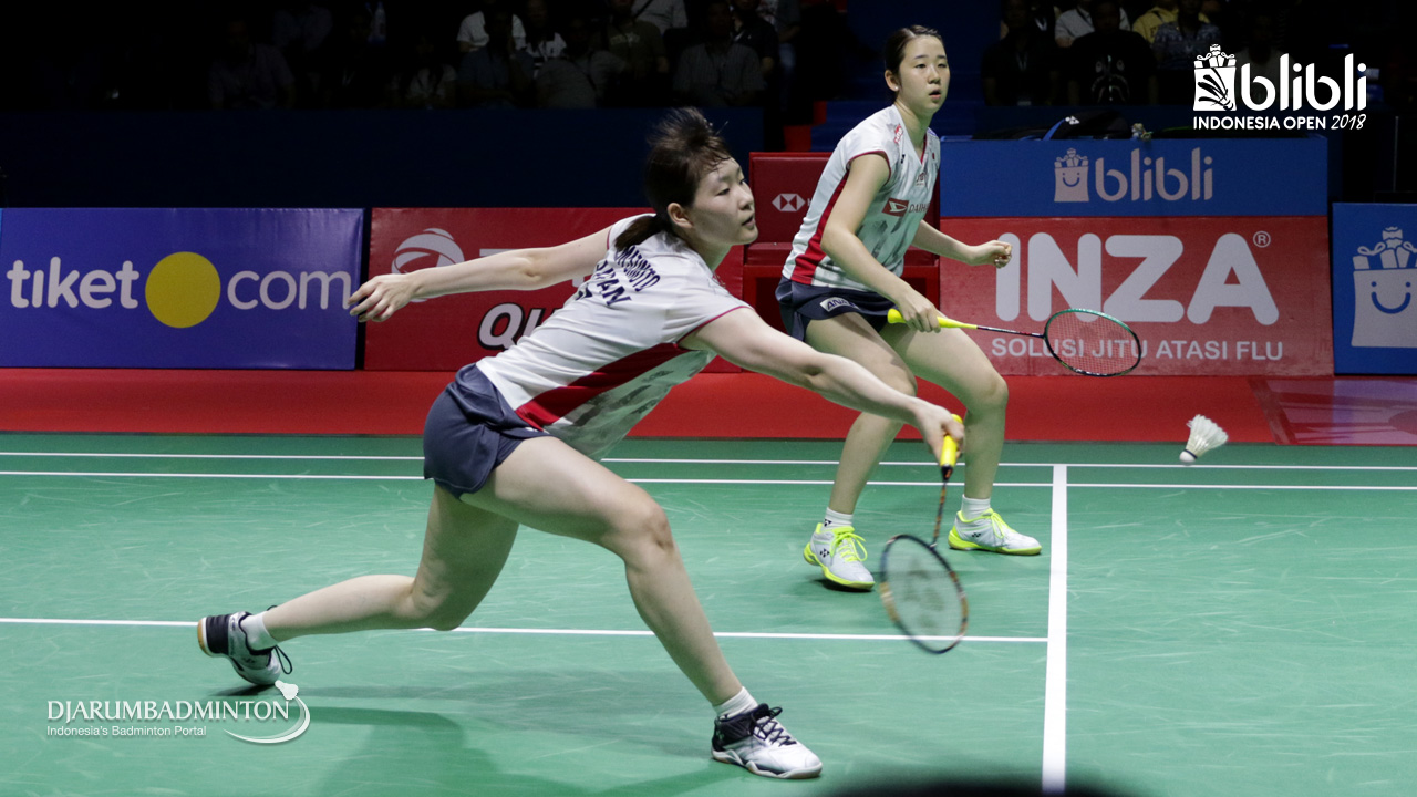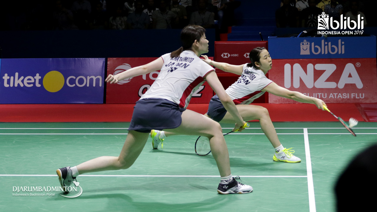 Mayu Matsumoto/Wakana Nagahara (JPN) bersiap menghadang serangan