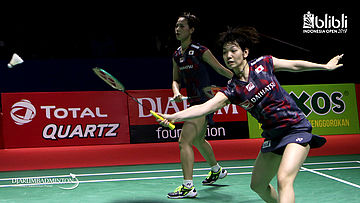 Yuki Fukushima/Sayaka Hirota (JPN) menghadang serangan