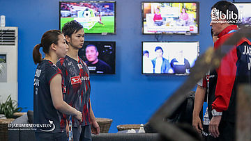 Yuta WATANABE dan Arisa HIGASHINO (Jepang) mendapat pengarahan pelatih