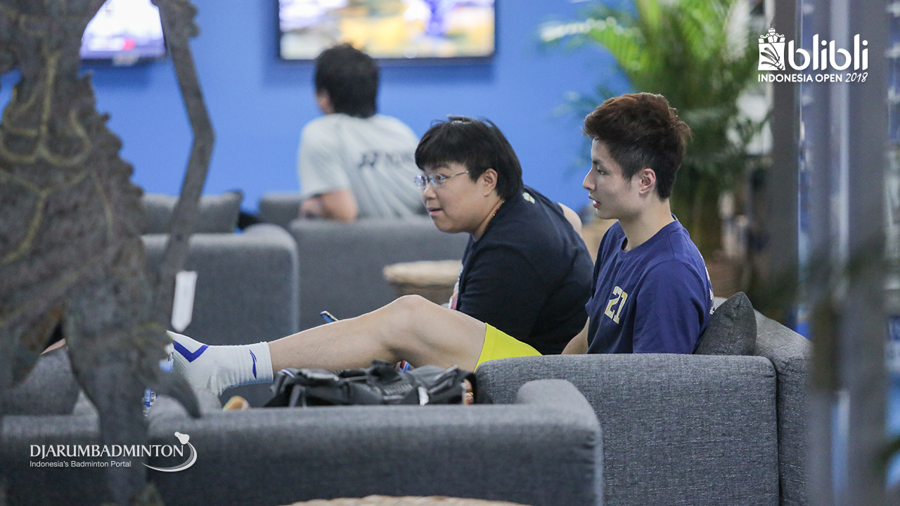 SHI Yuqi (Tiongkok) saat berada di player lounge