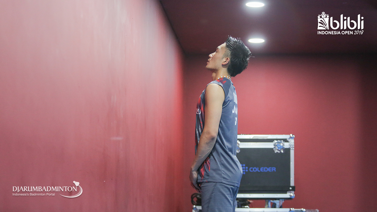Kento MOMOTA (Jepang) berdoa sebelum bertanding