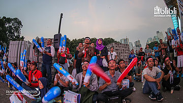 Suasana nonton bareng pertandingan Indonesia melawan Malaysia pada BLIBLI Stage