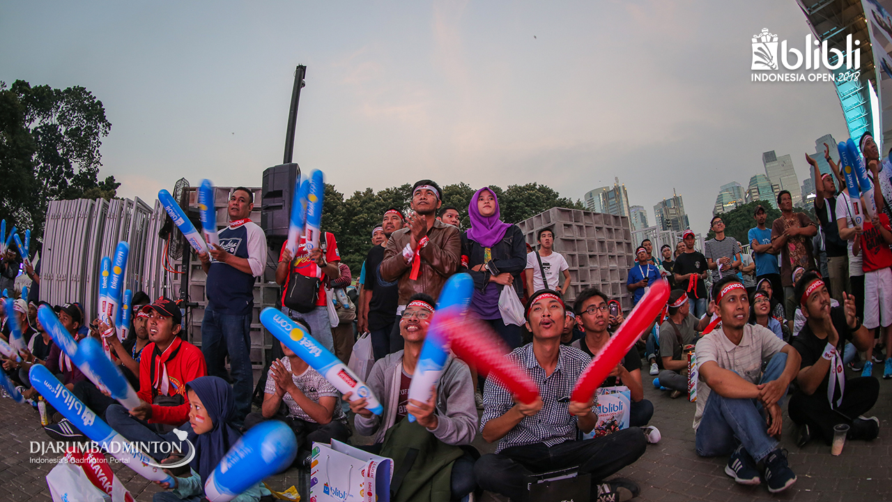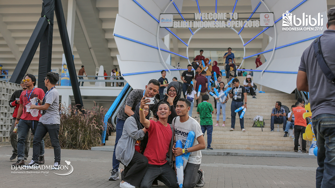 Penonton berfoto bersama di sekitaran area BLIBLI Indonesia Open 2018