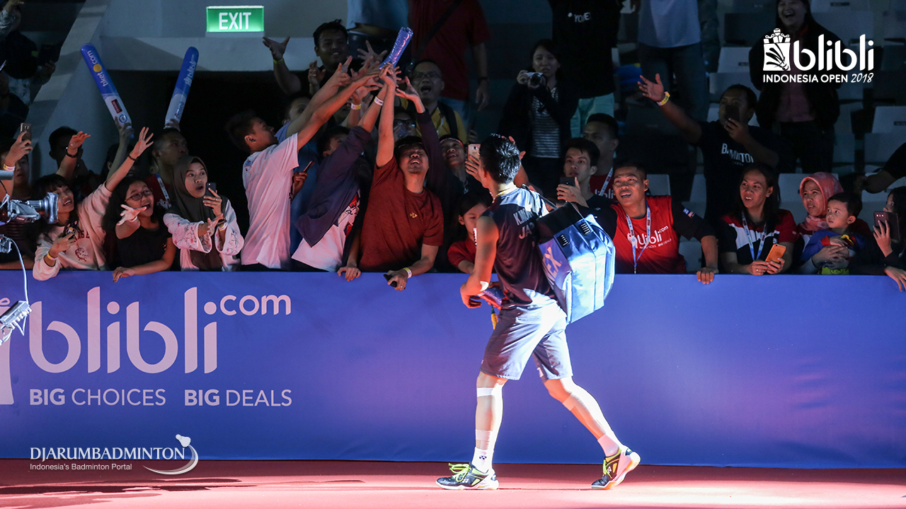 Kento MOMOTA (Jepang) saat memasuki lapangan pertandingan