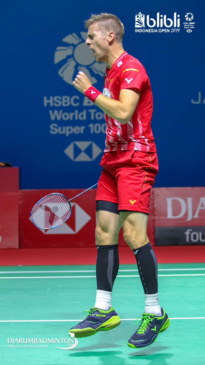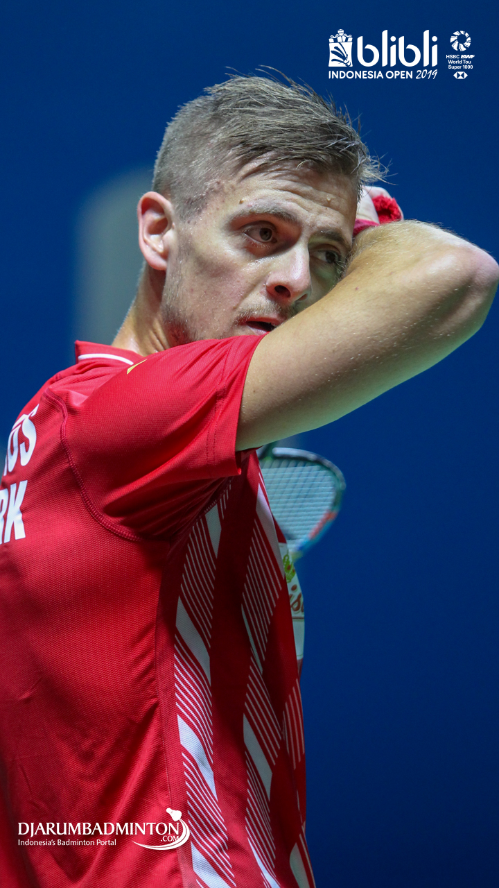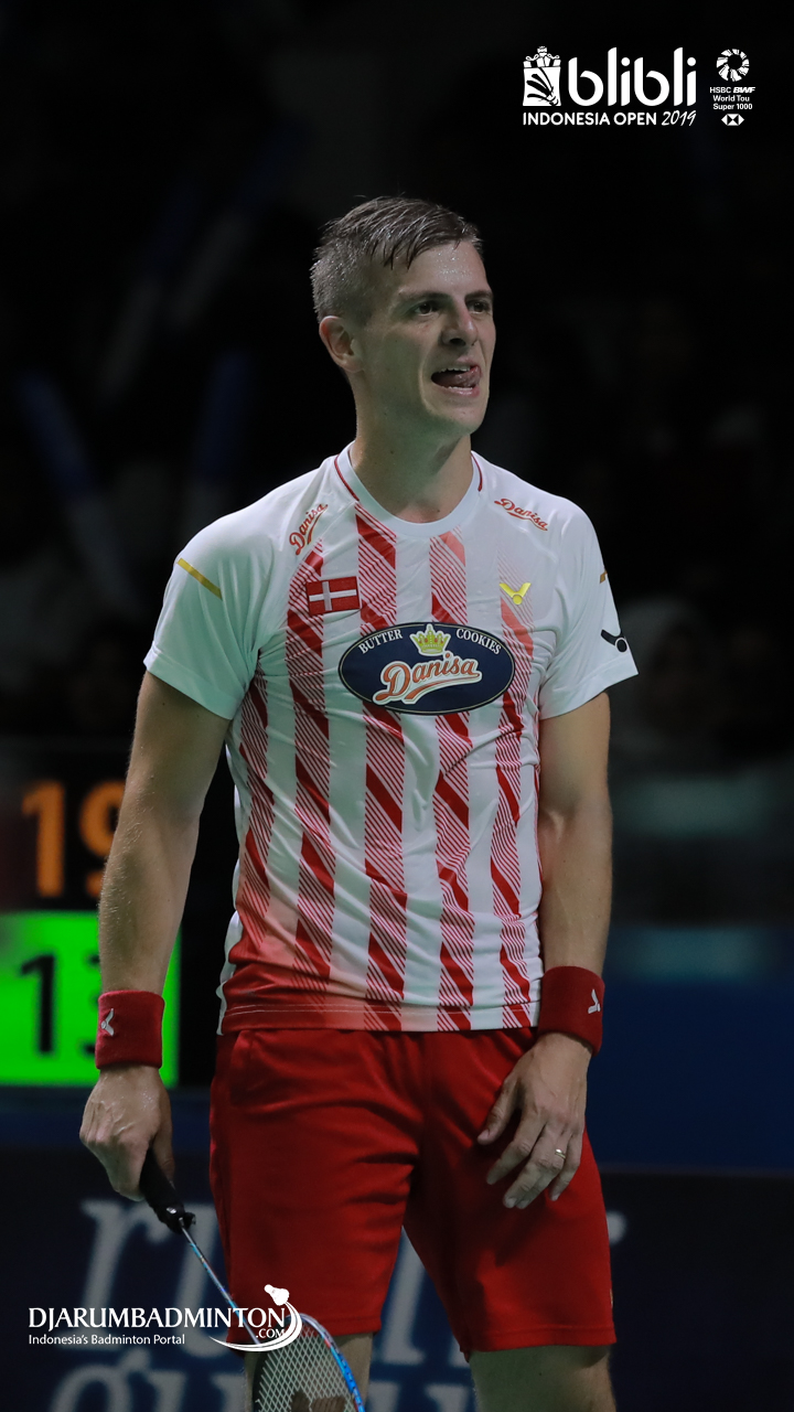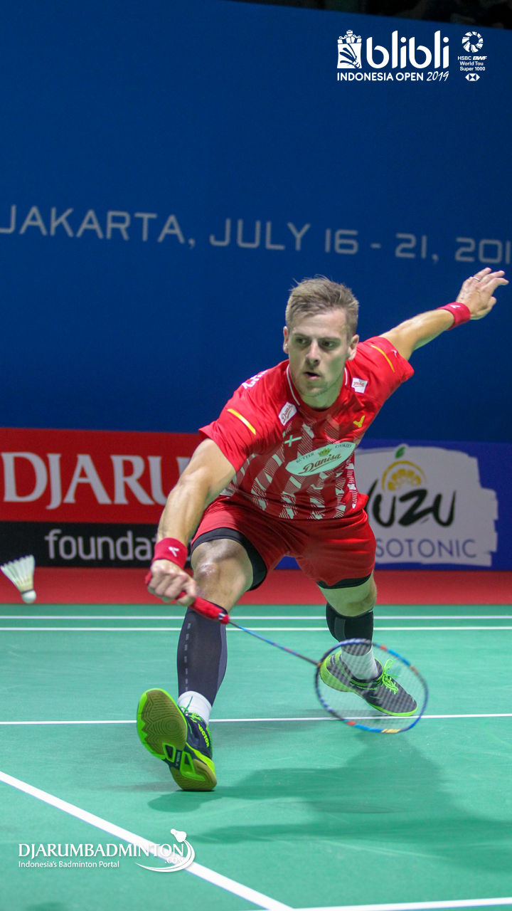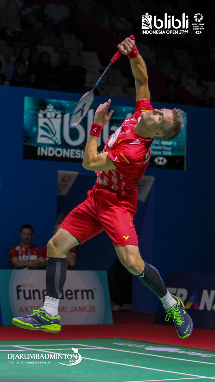 Hans-Kristian Solberg VITTINGHUS (Denmark) menyambut shuttlecock