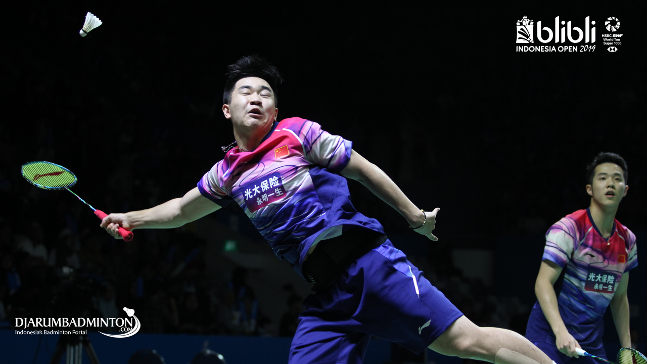HE Ji Ting, TAN Qiang (China) mengembalikan serangan