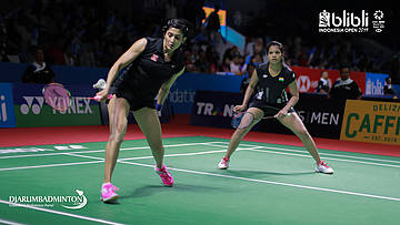 Ashwini PONNAPPA/REDDY N. Sikki (India) menahan serangan