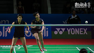 Ashwini PONNAPPA/REDDY N. Sikki (India) mengembalikan shuttlecock