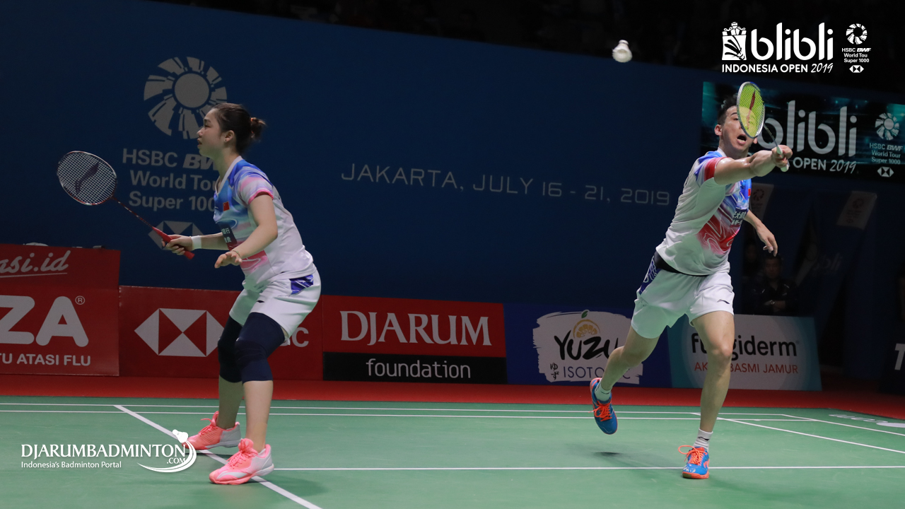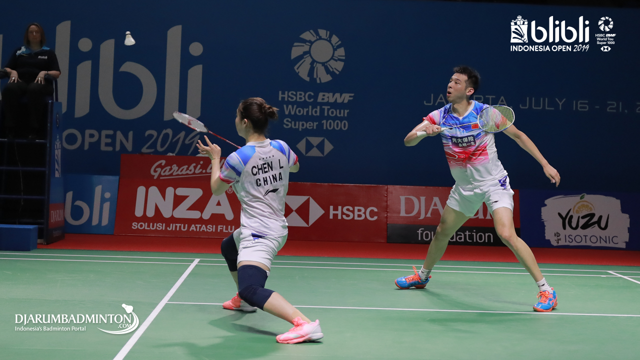 LU Kai/CHEN Lu (China) mengembalikan shuttlecock