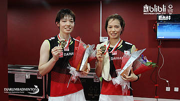 Sayaka Hirota (kiri) dan Yuki Fukushima di Players Services seusai bertanding