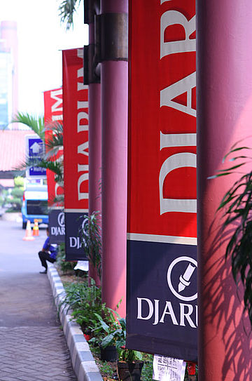Spanduk Djarum mengelilingi taman