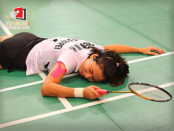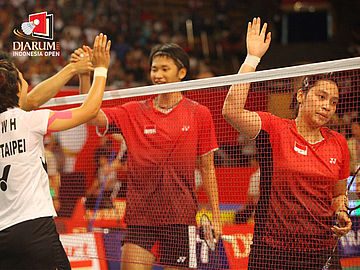 Vita Marissa mengembalikkan pukulan lawan Malaysia
