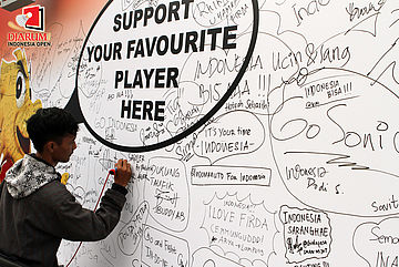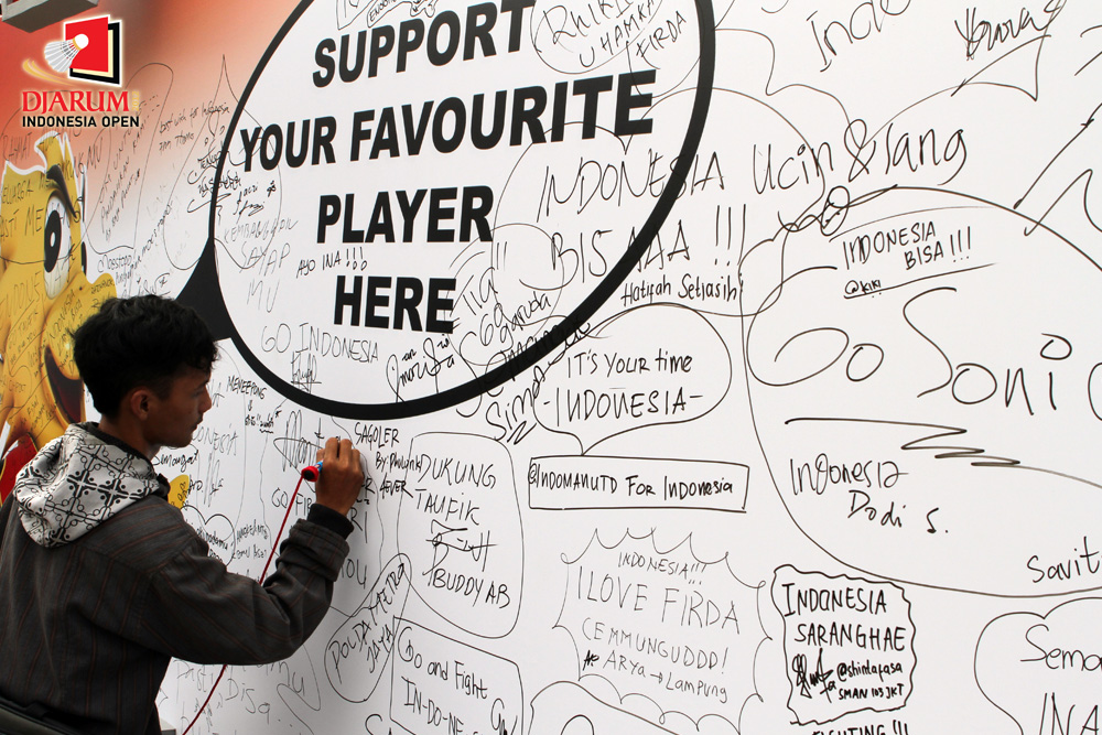 Pengunjung bisa memberikan dukungan kepada pemain favorit mereka yang berlaga di Djarum Indonesia Open 2012.