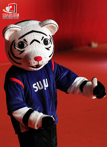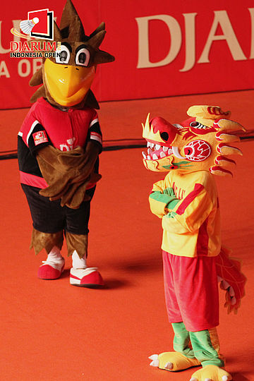 Maskot Indonesia, DIO (kiri) dan maskot China, Lung Lung.