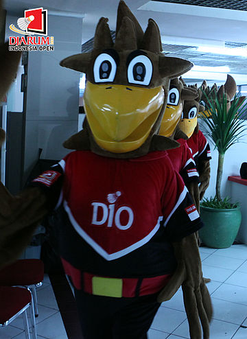 Maskot Indonesia, DIO tengah berlajan ke area Media Center.