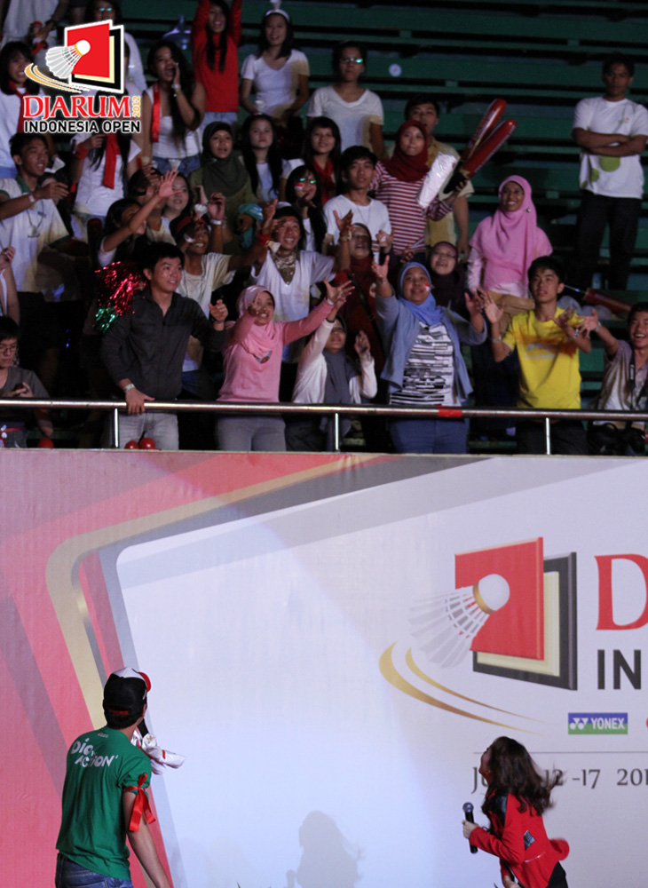Ayu Ting Ting menghibur penonton yang menyaksikan final Djarum Indonesia Open 2012.