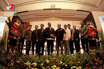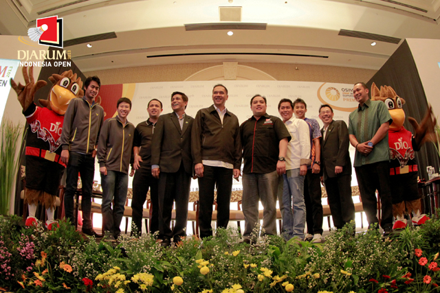Para narasumber saat pelaksanaan press conference Djarum Indonesia Open Super Series Premier 2013.