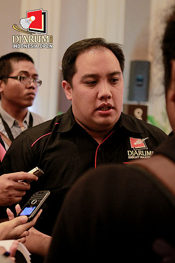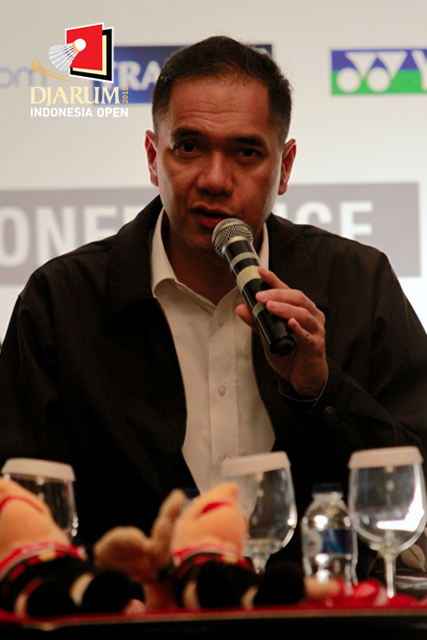 Gita Wirjawan ketua umum PB PBSI, saat menjawab pertanyaan rekan media.