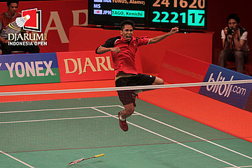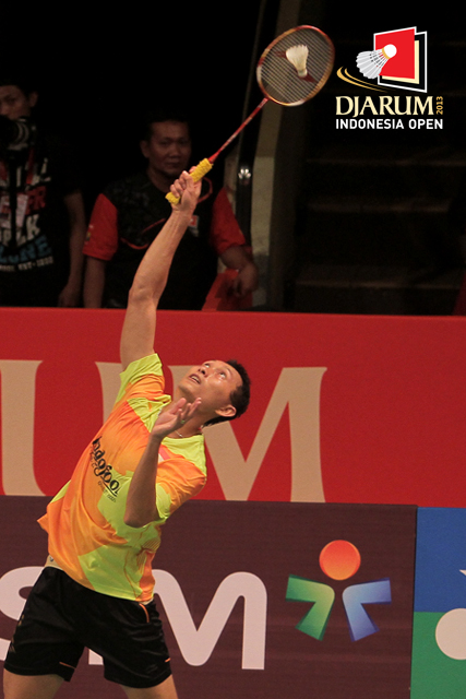 Sony Dwi Kuncoro (Indonesia) melepaskan smash.
