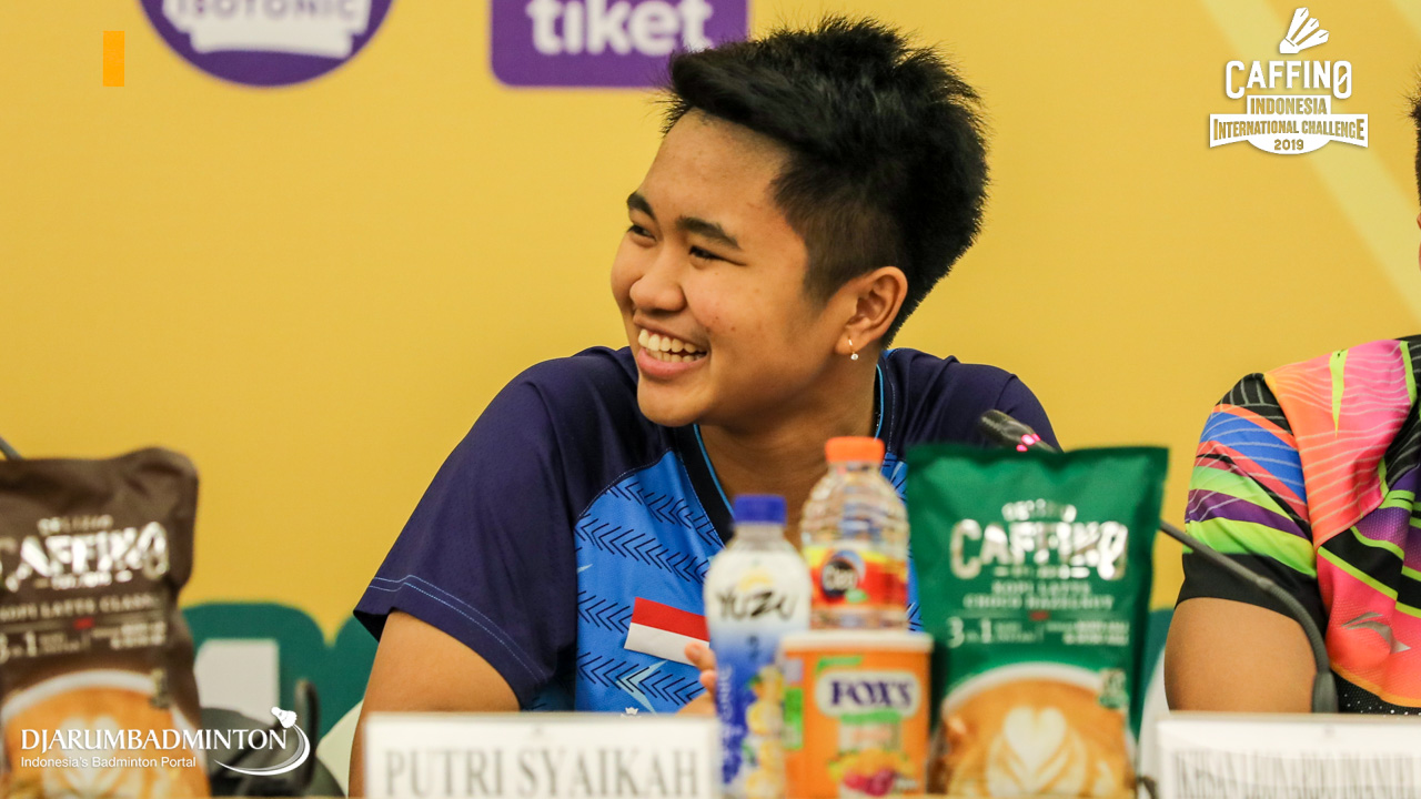 Putri Syaikah Ulima Hidayat saat Press Conference CAFFINO Indonesia International Challenge 2019