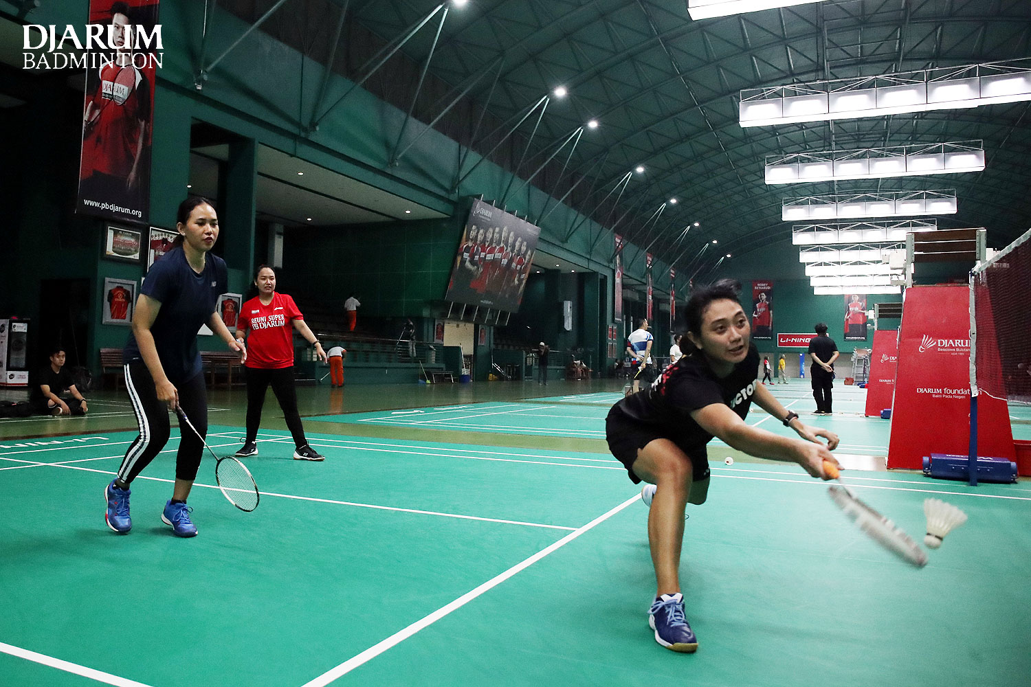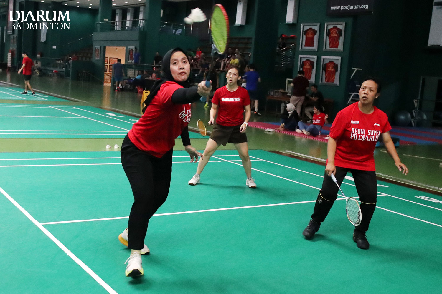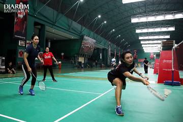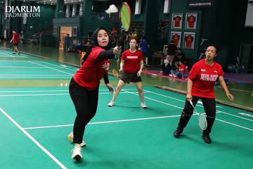 Kegiatan main bareng alias mabar bulu tangkis yang dilakukan oleh para mantan atlet PB Djarum di GOR Djarum, Jati, Kudus, Jawa Tengah, Jumat (29/4) sore.