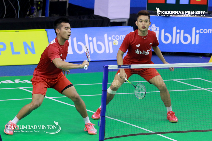 Leo Rollycarnando/Pramudya Kusumawardana (Jawa Tengah) Menahan Serangan