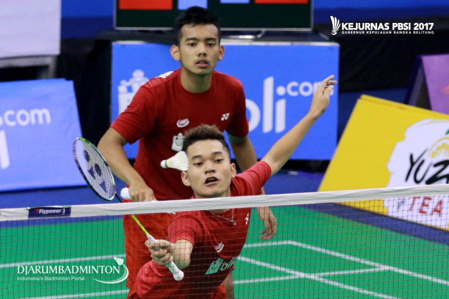 Leo Rollycarnando/Pramudya Kusumawardana (Jawa Tengah) Menyambar Pengembalian Lawan