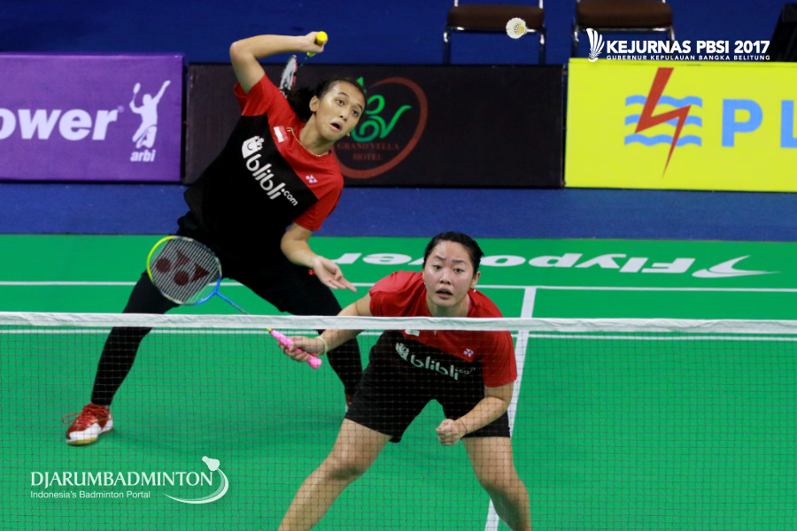 Febriana Dwipuji K/Tiara Rosalia Nuraidah (Jawa Tengah/Jawa Barat) Berusaha Menggapai Shuttlecock