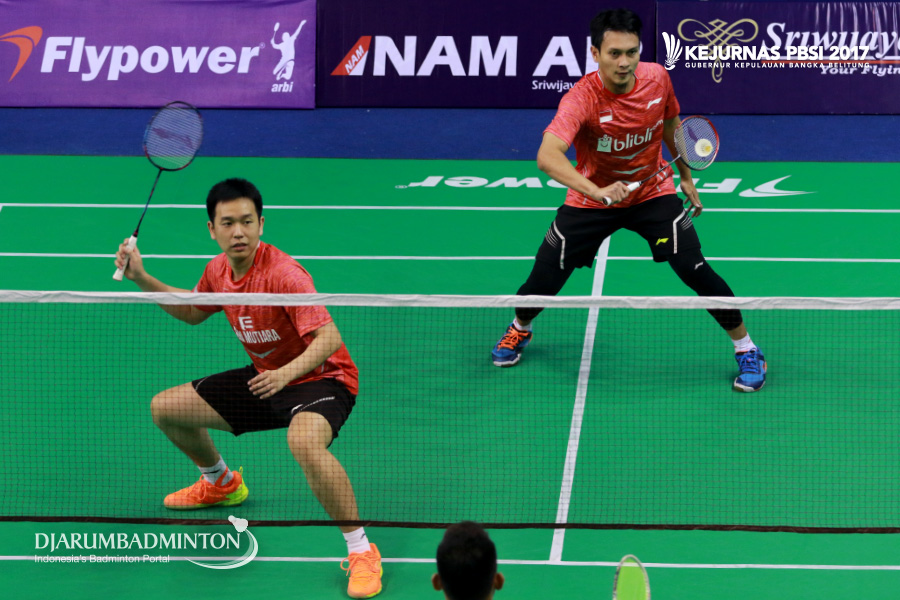 Hendra Setiawan/Mohammad Ahsan (DKI Jakarta/Jawa Tengah) Menahan Serangan