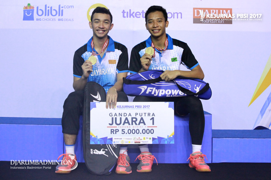 Alfandy Rizki Putra Kasturo/Emanuel Randhy Febryto (DKI Jakarta) Berfoto di Podium Juara