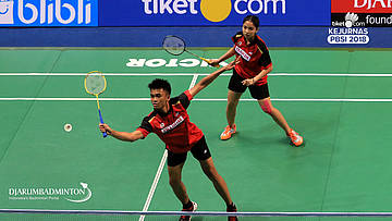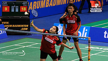 Naufal Ligo Saufik+Khusnul Khatimah (Jawa Tengah) Bersiap menyambar shuttlecock