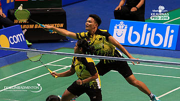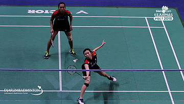 Debby Susanto+Rosyita Eka Putri Sari (Djarum Kudus) Mengembalikan shuttlecock