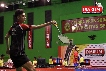 Riyanto Subagja (Djarum Kudus) Mengembalikan Shuttlecock.