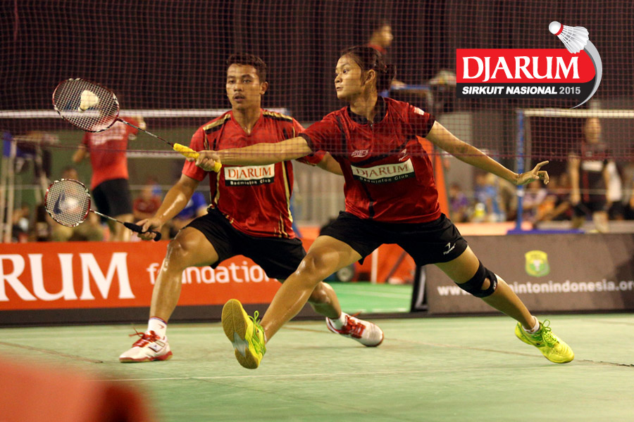 Jeka Wiratama/Vita Marissa (Djarum Kudus) menghadang pengembalian dari Hafiz Faisal/Shela Devi (Pelatnas).