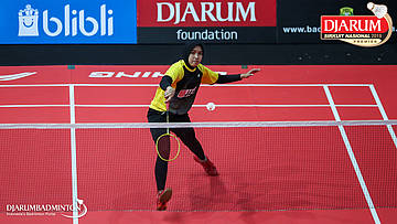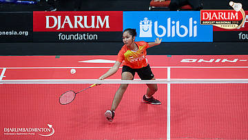 Ester Nurumi Tri Wardoyo (Exist Badminton Club) menyambut shuttlecock