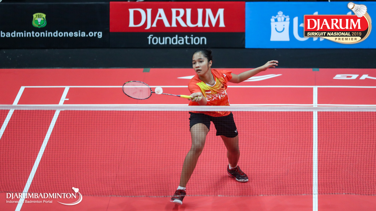 Sheila Dinda Kurniawan (Jaya Raya Jakarta) menyambut shuttlecock