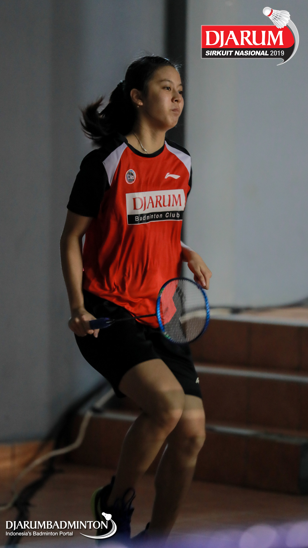 Velisha Christina (PB Djarum, Kudus) melakukan pemanasan sebelum bertanding