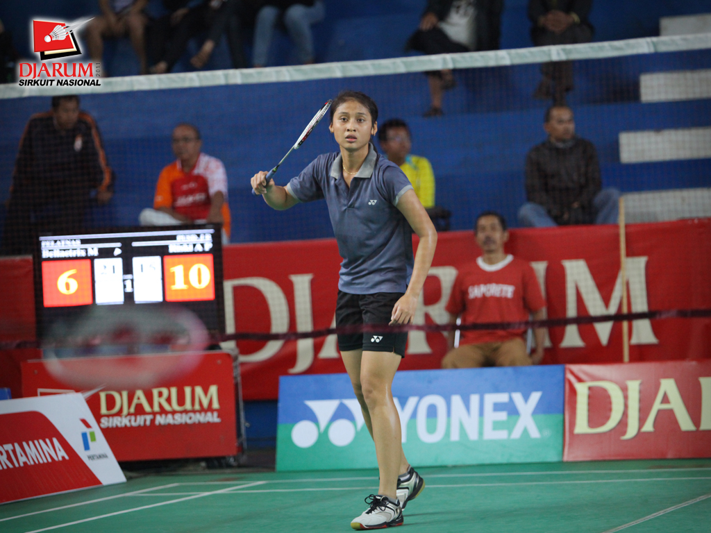 Elizabeth Purwaningtyas menatap serangan kok lawan