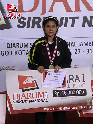 Juara 1 Tunggal Dewasa Putri Djarum Sirnas Jambi Open 2012, Ganis Nurrahmadini dari Pelatprov DKI.